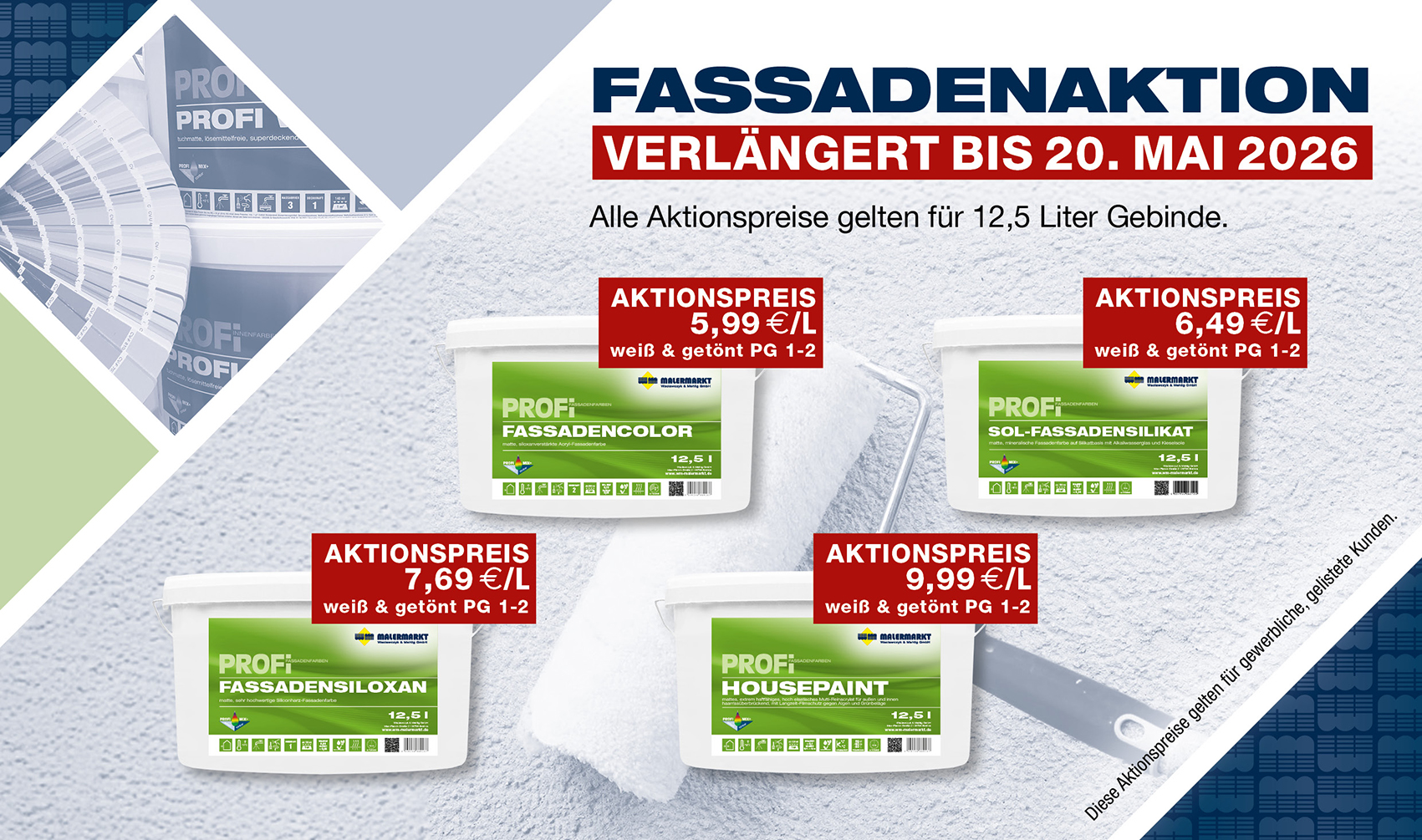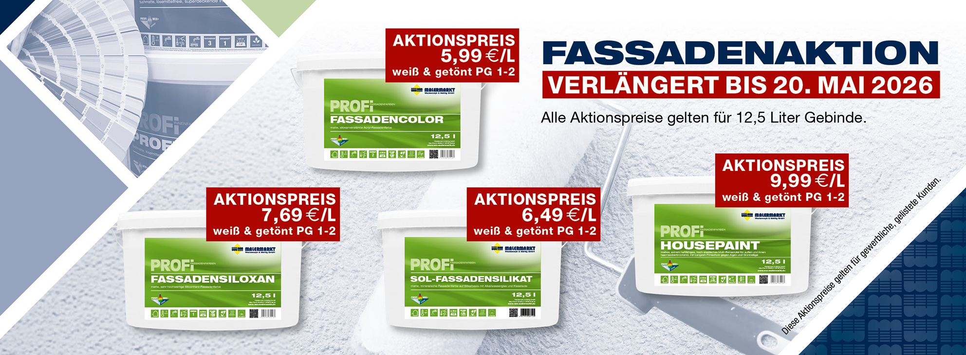 Als Großhändler bieten wir, die W&M Malermärkte, ein Komplettsortiment für das Maler,- Bodenleger- und Stuckateurhandwerk. An 5 Standorten in Leipzig, Brehna, Halle, Dessau und Wittenberg erhalten Fachhandwerker Qualitätsprodukte unserer PROFI Eigenmarke und namhafter Industriepartner. Profitieren Sie von unseren zahlreichen Dienstleistungen, wie zum Beispiel regelmäßigen Veranstaltungen und Seminaren zu interessanten Themen rund um das Malerfachhandwerk.